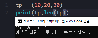 튜플도 list처럼 len을 쓸 수 있습니다.
