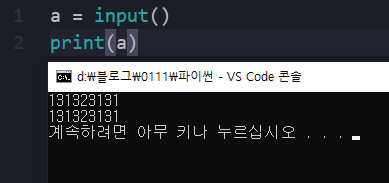 a = input() 이란 거는 입력하는 값을 a에 저장한다는 의미입니다.