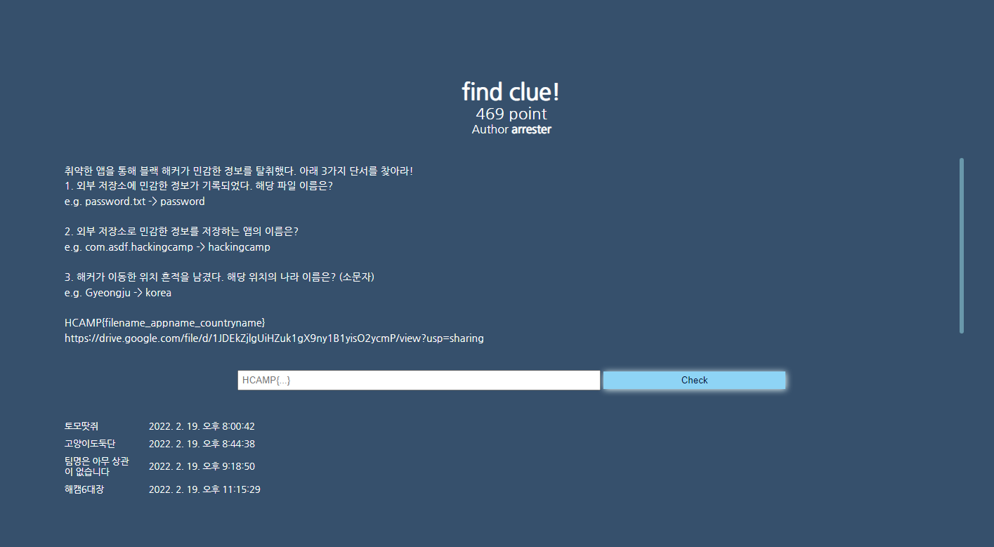 1 외부 저장소에 민감한 정보가 기록되었다. 해당 파일 이름은?