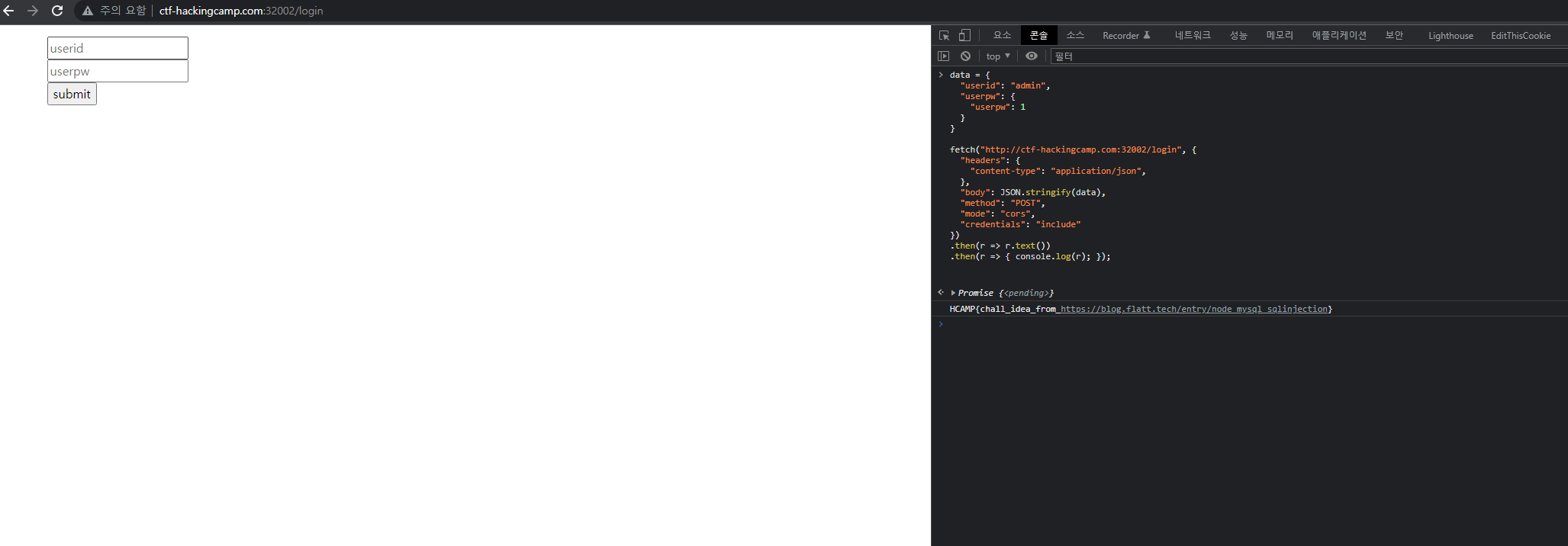 fetch("http://ctf-hackingcamp.com:32002/login", {