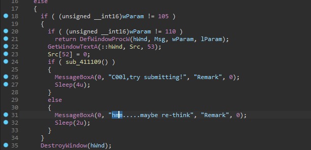 MessageBoxA(0, "Thanks for your input", "Gratitude", 0);
