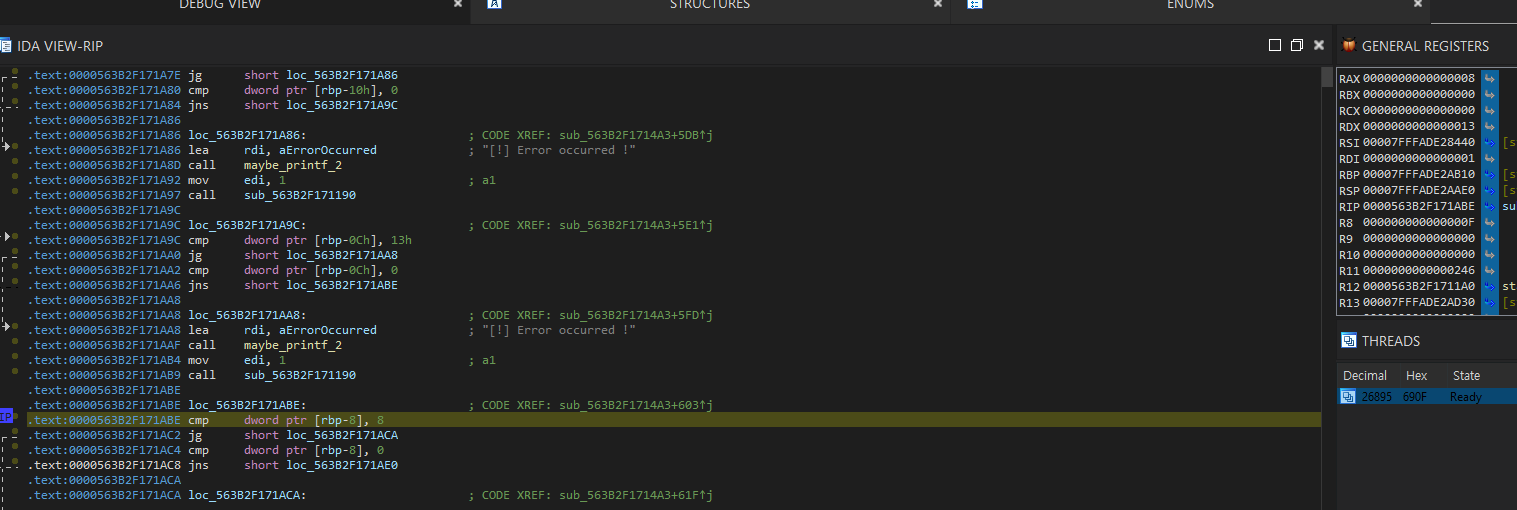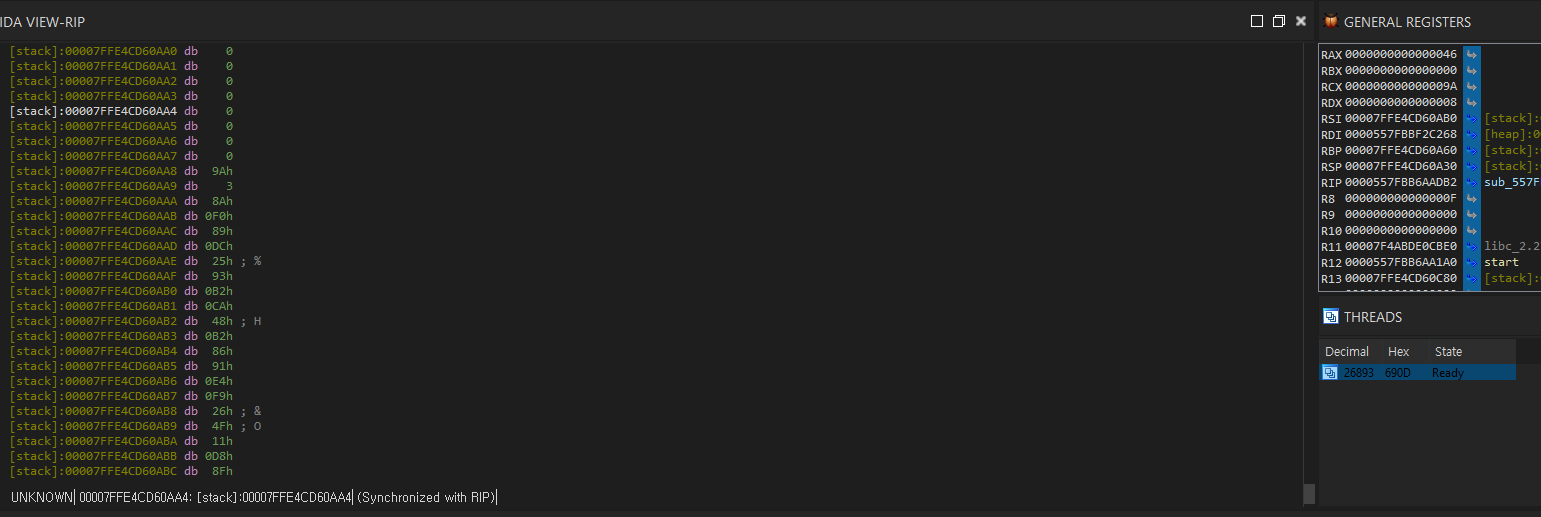 RAX값을 보니 8개를 입력받는 것을 알 수 있다. (read 함수 호출 후)