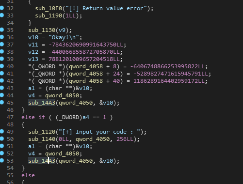 여기를 보면 sub_1100는 write함수로 이동하는 함수라고 알 수 있다.