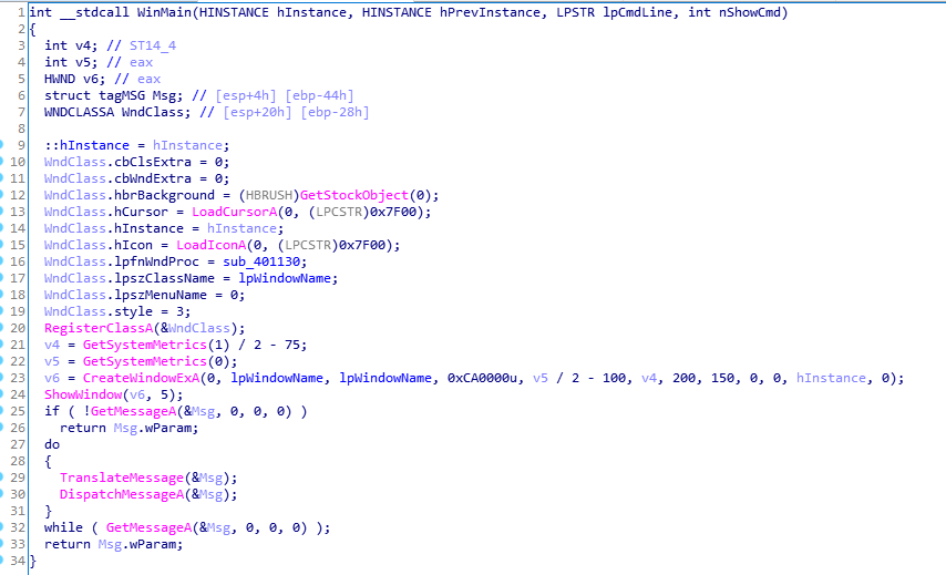 WinMain 함수 입니다.