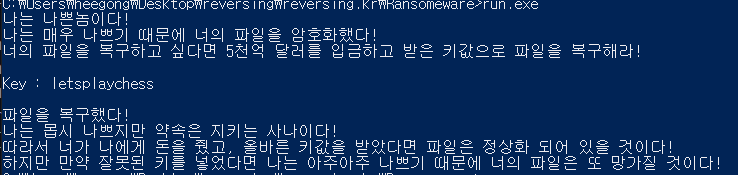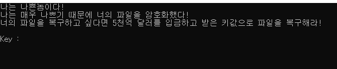 자신이 나쁜놈이라면서 파일을 돈을 내고 받은 키값으로 파일을 복구하라고 하네요.