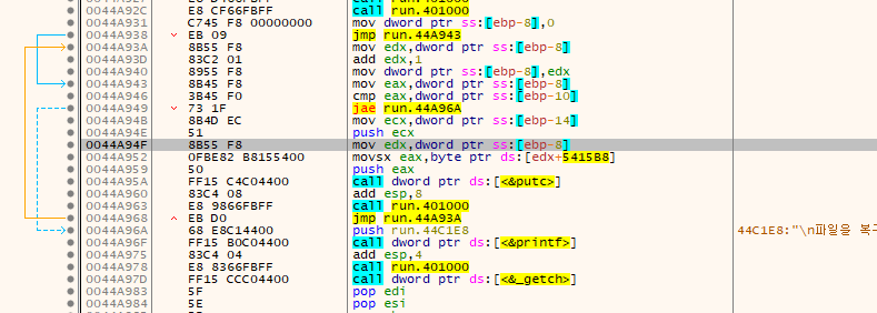 그리고 파일 복구했다고 출력합니다.