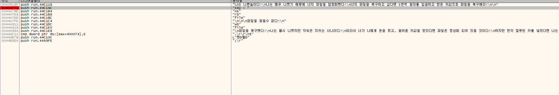 EXE파일을 복호화 하라고 하네요.