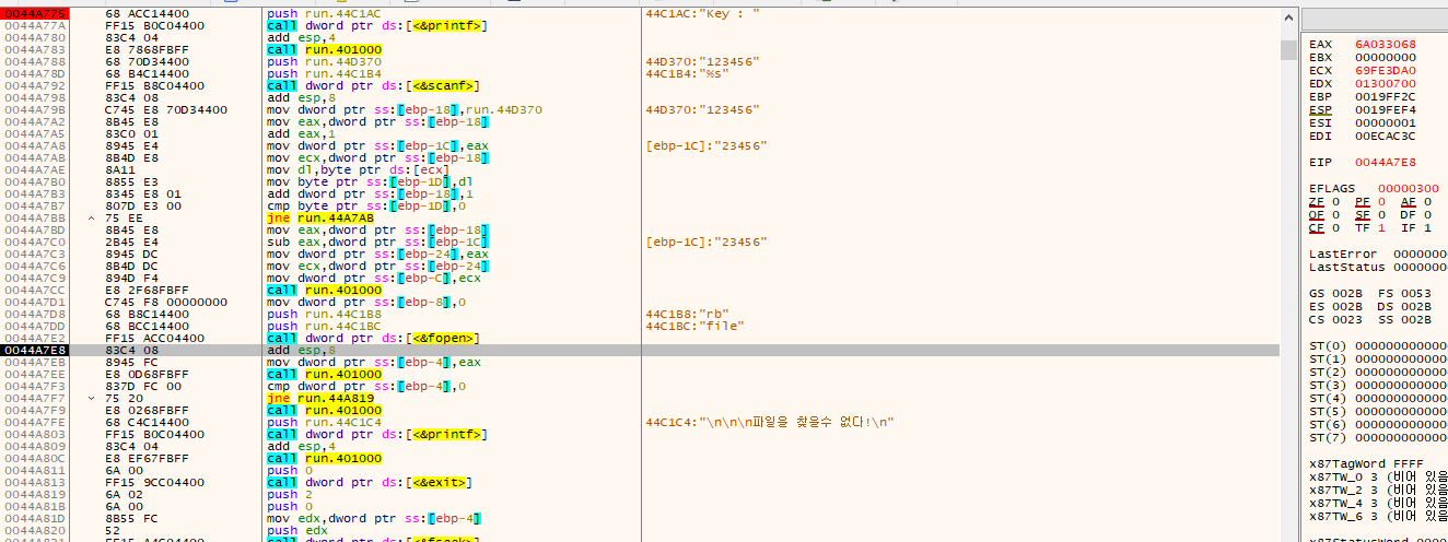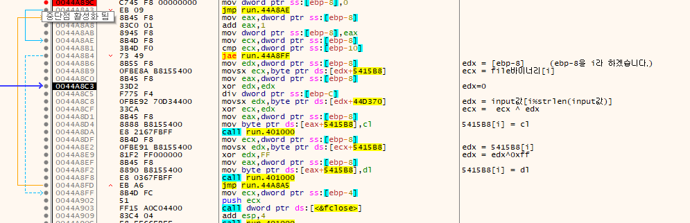 Key : 부분에 bp를 걸고 f9를 눌러보겠습니다.